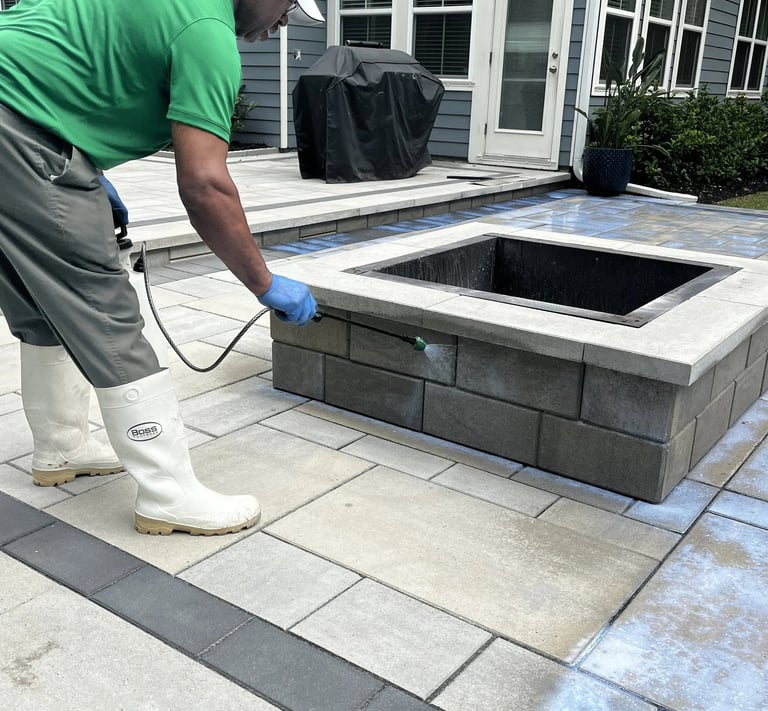 Brick paver sealing is a protective maintenance process designed to help preserve the appearance, stability, and long-term performance of your paver surface. Over time, weather, traffic, UV exposure, weeds, and joint erosion can cause pavers to fade, shift, or lose their clean finished look. Proper cleaning, joint re-sanding, and sealing helps restore color, stabilize the joints, reduce water penetration, and provide a protective barrier against the elements.