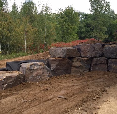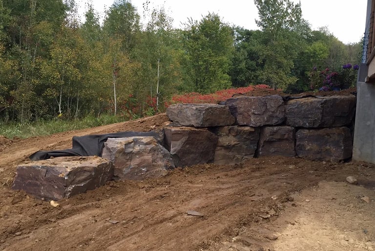 Boulder retaining walls are a natural, heavy-duty solution for managing elevation changes, stabilizing slopes, and adding structure to outdoor spaces. Built using large, natural stone, these walls rely on proper placement, base preparation, and drainage to perform correctly over time. When installed with precision, boulder walls provide long-lasting strength while blending seamlessly into the surrounding landscape. Our approach focuses on building walls that not only look natural, but are engineered to hold, protect, and endure.