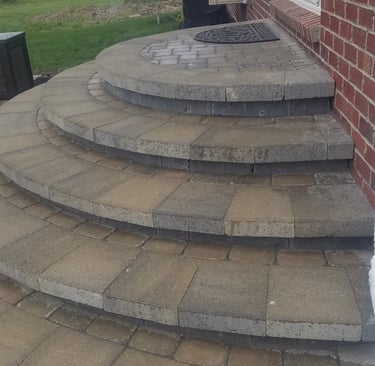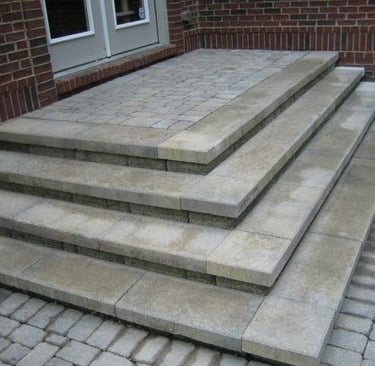 A reinforced base is installed and compacted to prevent movement or settling. Step units, blocks, or stone are carefully set and aligned to maintain proper spacing, level surfaces, and comfortable transitions between elevations. Coping pieces are fitted and secured along edges and wall caps to protect underlying materials and create a clean, finished appearance.